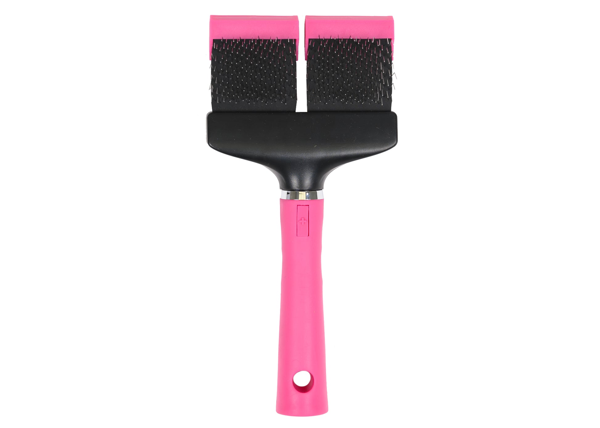 De Show Tech+ Flex Groom Slicker Double Soft heeft een dubbele borstelkop en is perfect voor sneller en efficiënter borstelen bij honden en katten met een zachte of gevoelige vacht. Dankzij de flexibele kop en zachte pinnen verwijder je klitten en losse haren zonder de huid te irriteren.